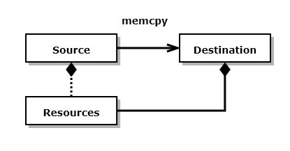 consists of control block in stack holding ptr to contiguous heap memory allocation.
